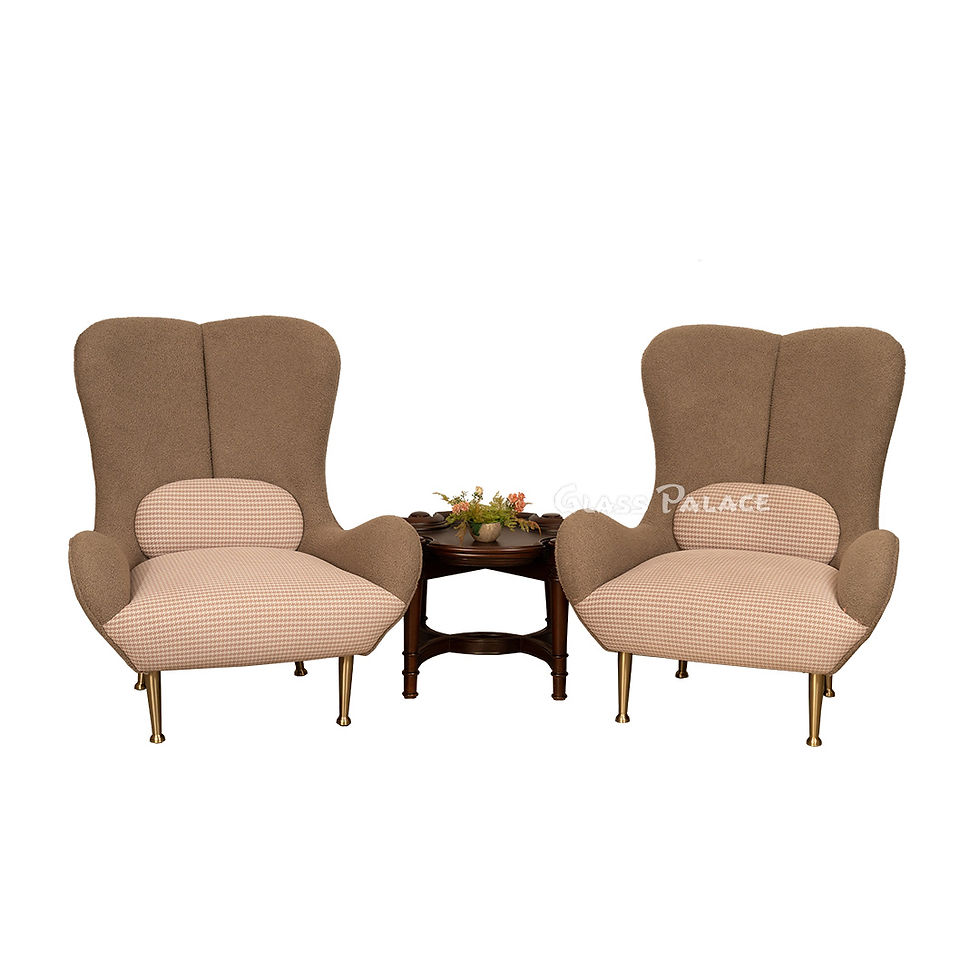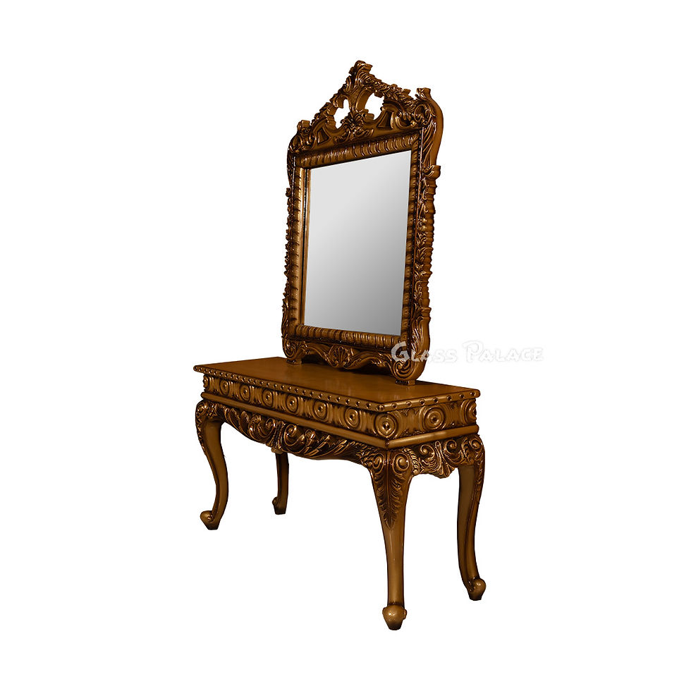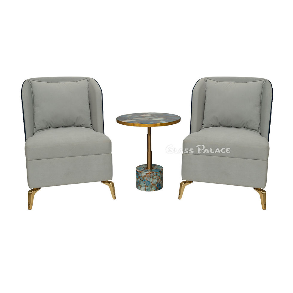 Introducing the Classic Golden Dusk Sofas, Chairs and Tables, a luxurious addition to any home. Handmade with intricate Middle Eastern carvings and a marble top table, this set exudes elegance and sophistication. The suede velvet fabric and golden accents add a touch of opulence to the already stunning pieces. Relax in comfort and style with the Classic Golden Dusk Sofas, Chairs and Tables.
